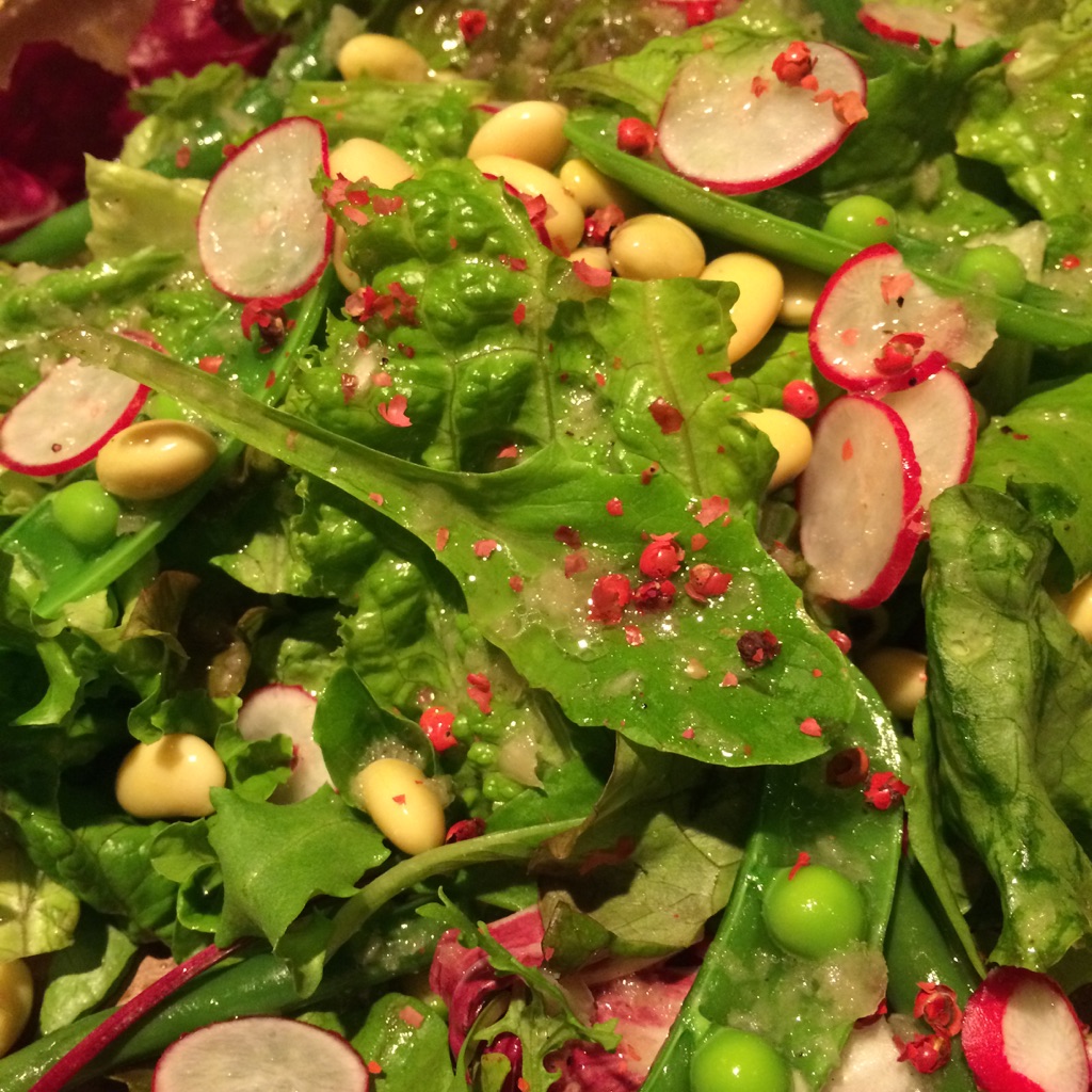 豆と葉野菜にピンクペッパーのかおりがマッチして